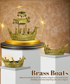 Beautifully handcrafted from pure brass, this decorative boat adds a nautical charm to your home or office. Its compact size makes it perfect for table décor or showcase displays. An excellent choice for gifting or traditional art lovers.