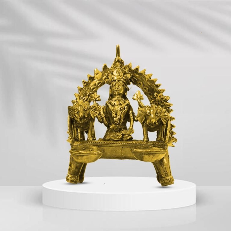 This 6x9 inch brass lamp is a finely handcrafted piece made from premium brass, designed to bring warmth and divinity to any space. Perfect for pooja rituals, festive décor, or gifting, it symbolizes purity and tradition. Its elegant design enhances the spiritual atmosphere of homes, temples, or sacred corners.
