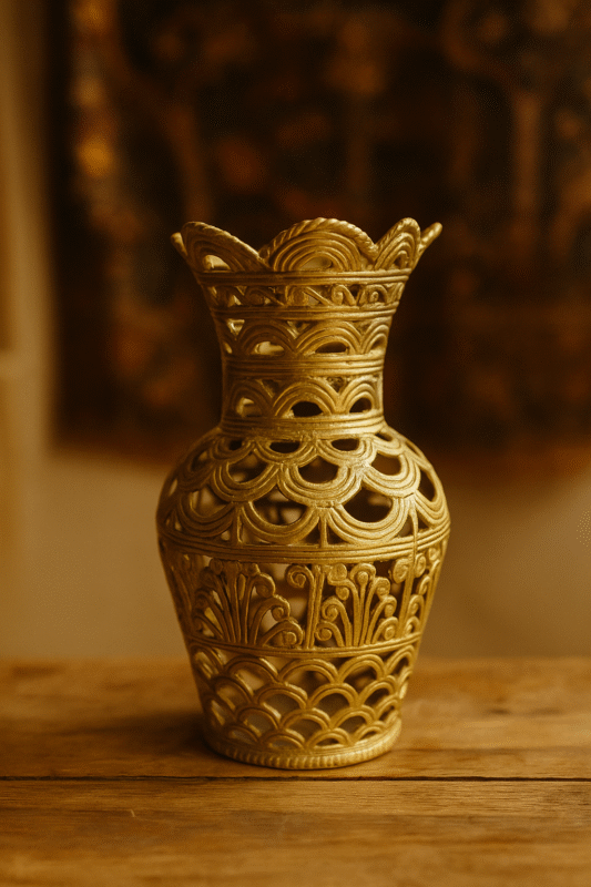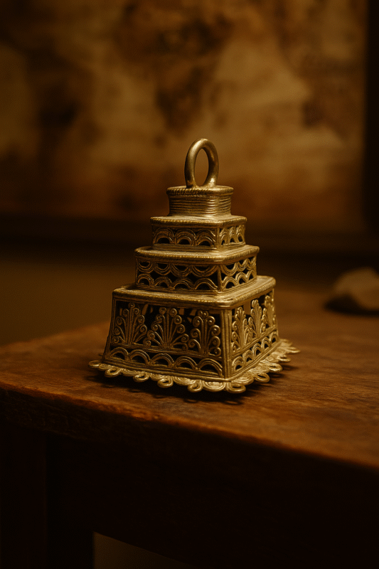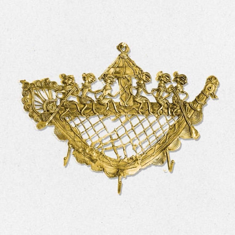 This 13.5x5 inch brass keyring is a finely handcrafted piece that combines durability with traditional design. Made from premium-quality brass, it features intricate detailing and a sturdy build. Ideal for organizing keys, adding a touch of culture to your space, or gifting, it reflects timeless elegance and functional charm.