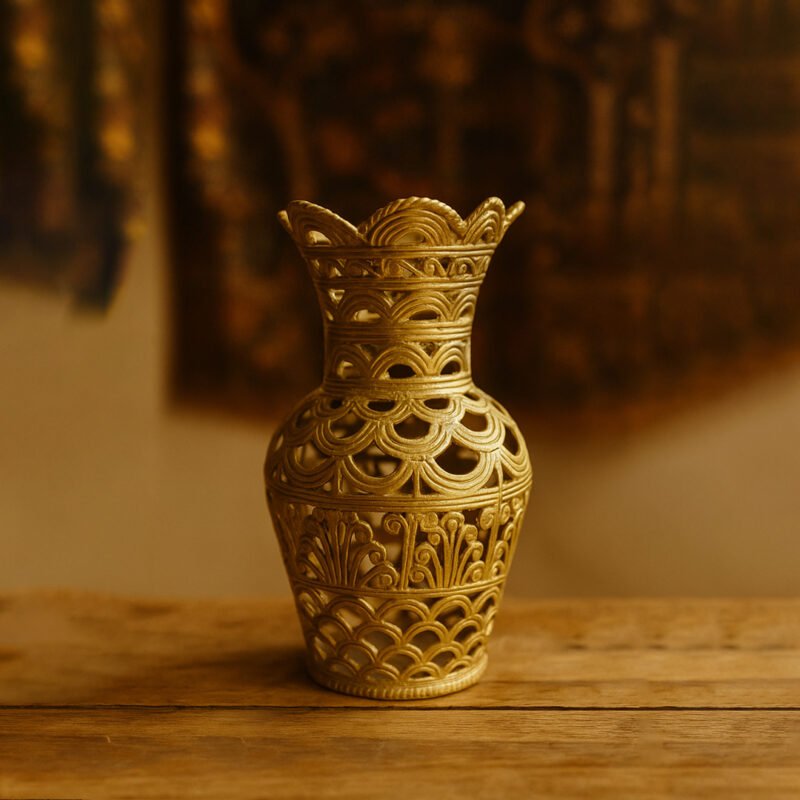 This 5x8 inch brass lamp is a finely handcrafted piece, designed to bring warmth, purity, and spiritual light to any space. Made from high-quality brass, it reflects traditional Indian artistry. Ideal for pooja rituals, festive décor, or as a thoughtful gift, it adds timeless charm and cultural significance.