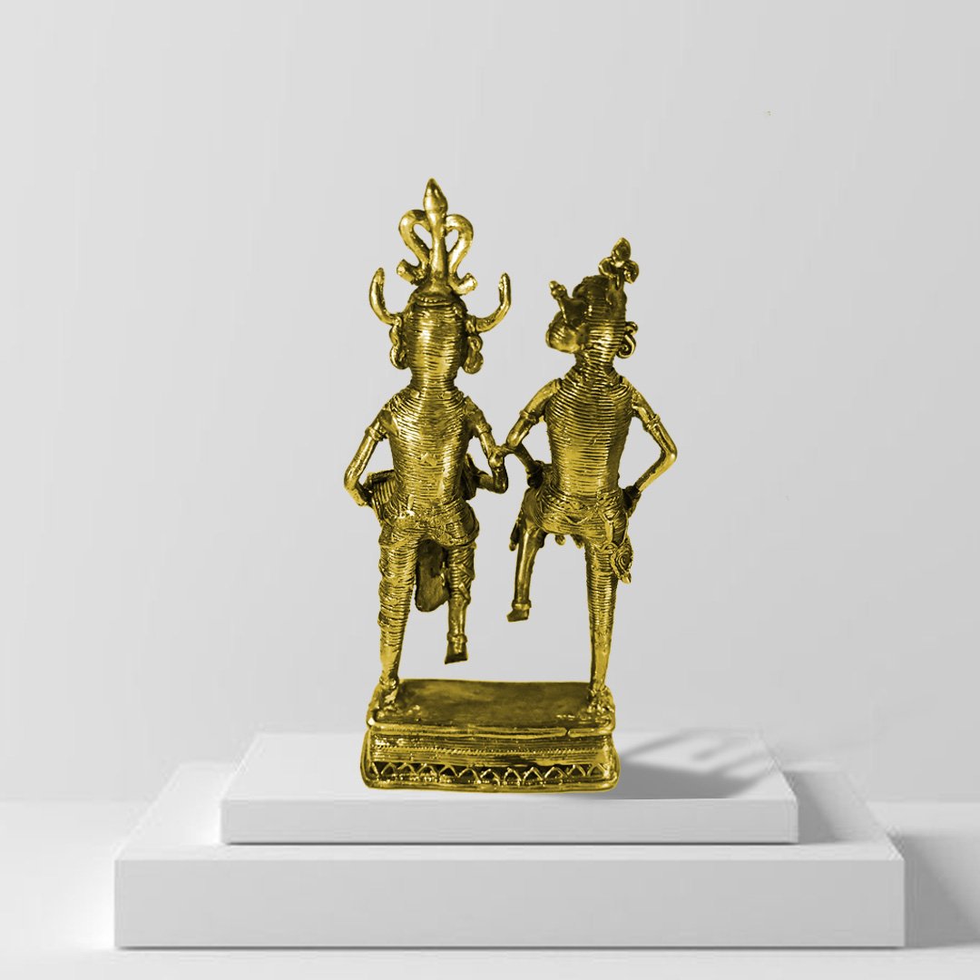 Standing tall at 5x12 inches, this elegant brass human sculpture highlights tribal traditions with a modern appeal. Ideal for ethnic home décor, art galleries, or gifting during festivals.