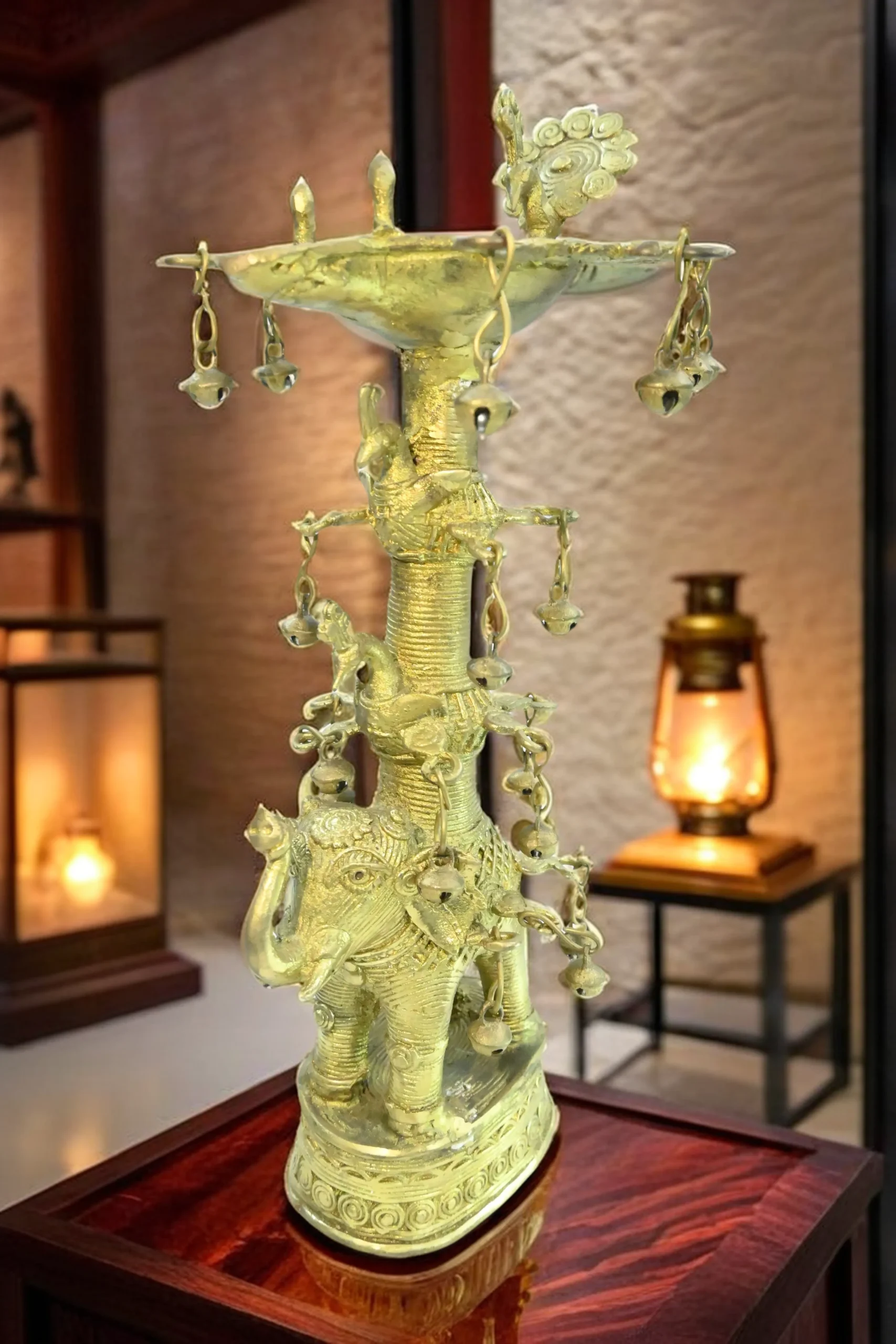 This 6x9 inch brass lamp is a finely handcrafted piece made from premium brass, designed to bring warmth and divinity to any space. Perfect for pooja rituals, festive décor, or gifting, it symbolizes purity and tradition. Its elegant design enhances the spiritual atmosphere of homes, temples, or sacred corners.