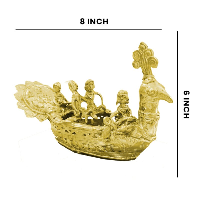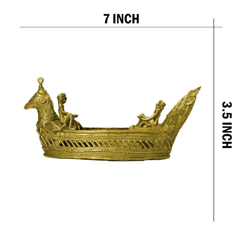 Beautifully handcrafted from pure brass, this decorative boat adds a nautical charm to your home or office. Its compact size makes it perfect for table décor or showcase displays. An excellent choice for gifting or traditional art lovers.