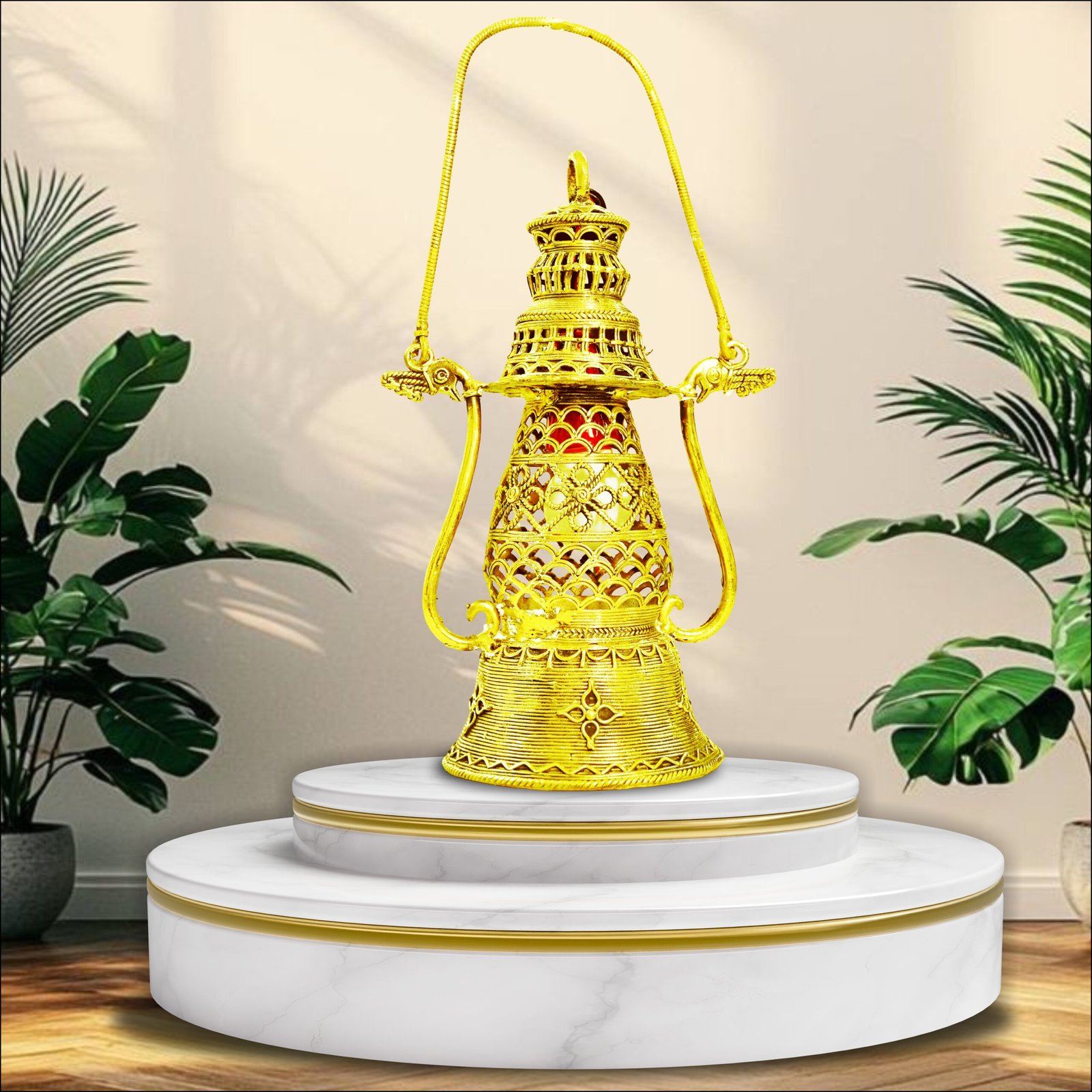 This 5x8 inch brass lamp is a finely handcrafted piece, designed to bring warmth, purity, and spiritual light to any space. Made from high-quality brass, it reflects traditional Indian artistry. Ideal for pooja rituals, festive décor, or as a thoughtful gift, it adds timeless charm and cultural significance.