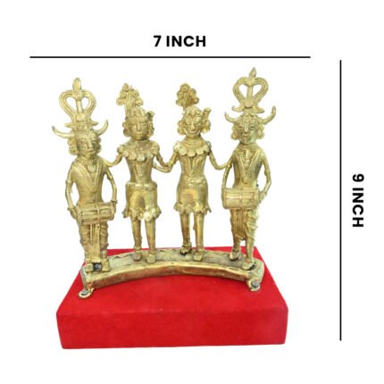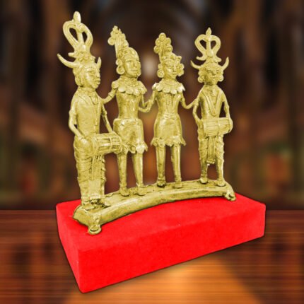 This 7x9 inch brass statue with four people is a beautifully detailed piece representing unity, culture, and community spirit. Handcrafted from premium brass, it showcases traditional Indian art and craftsmanship. Perfect for home décor, cultural displays, or gifting, it adds depth, meaning, and elegance to any space or occasion.