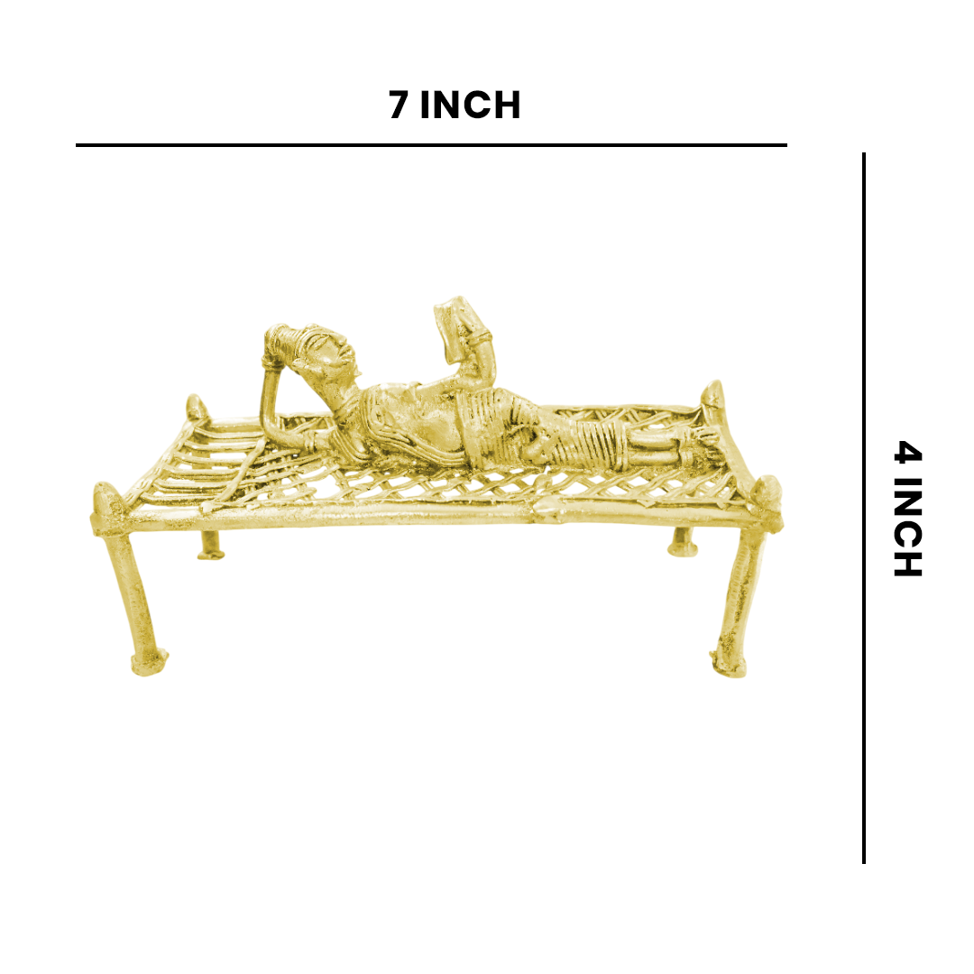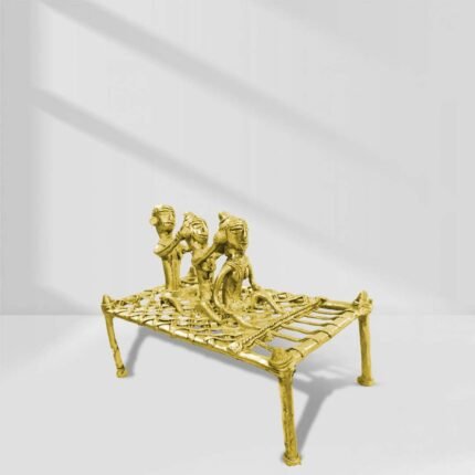 This 7×4 inch brass bed is a finely detailed handcrafted miniature, showcasing traditional Indian metal art. Made from high-quality brass, it adds charm to home décor, temple setups, or cultural displays. Ideal for gifting or spiritual spaces, it reflects timeless elegance, craftsmanship, and the essence of Indian heritage.
