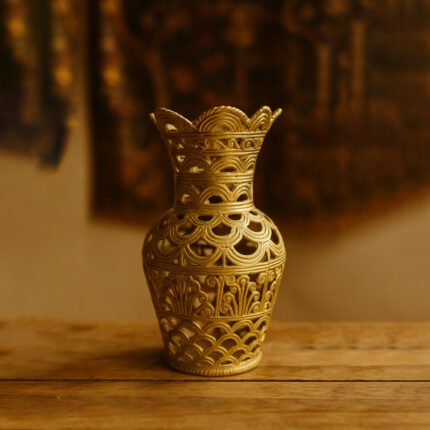 This 4x6.5 inch brass pot is a finely handcrafted piece made from high-quality brass, showcasing traditional Indian design. Commonly used in rituals and spiritual ceremonies, it symbolizes purity and abundance. Perfect for pooja, home décor, or gifting, it brings cultural elegance and timeless charm to any sacred space.