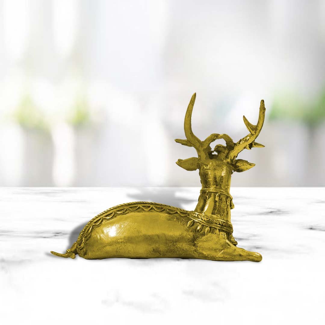 Graceful brass deer sculpture showcasing traditional Indian tribal craftsmanship.