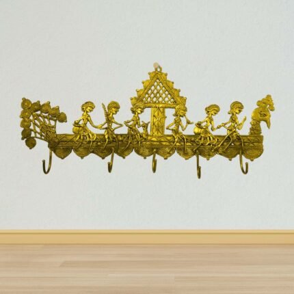 This 13.5x5 inch brass keyring is a finely handcrafted piece that combines durability with traditional design. Made from premium-quality brass, it features intricate detailing and a sturdy build. Ideal for organizing keys, adding a touch of culture to your space, or gifting, it reflects timeless elegance and functional charm.